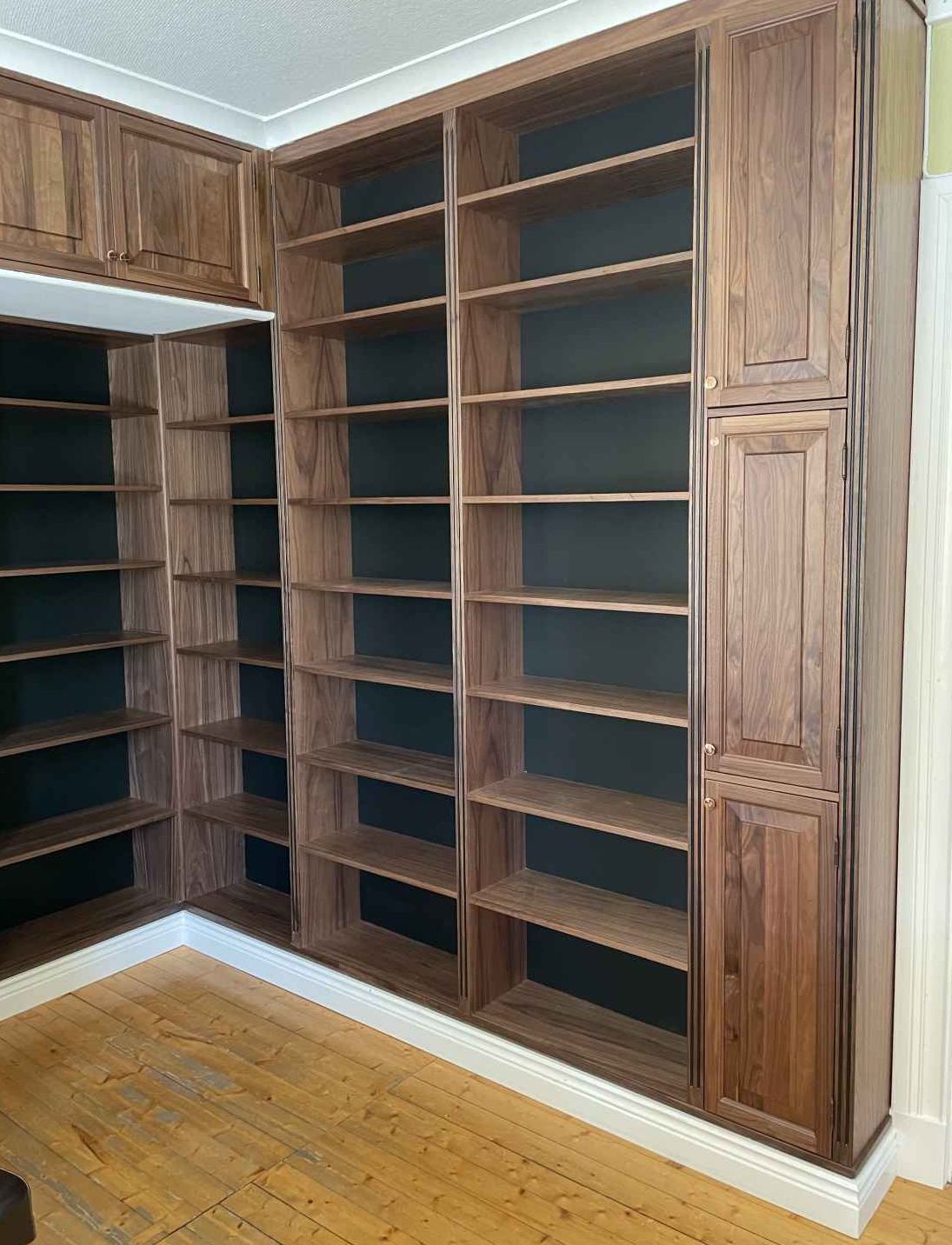 Platsbyggd bokhylla i valnöt.
